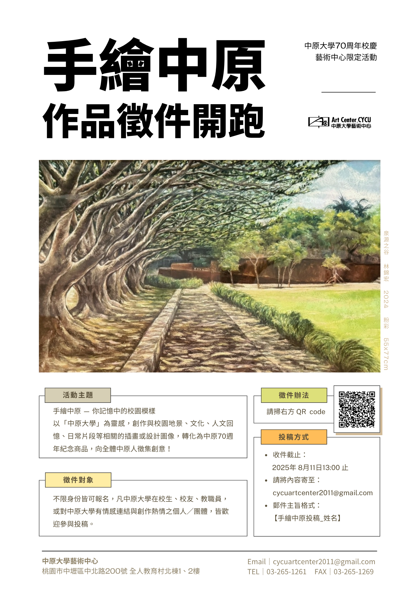 為響應2025年中原大學七十週年校慶,藝術中心特別舉辦《手繪中原》徵件活動,