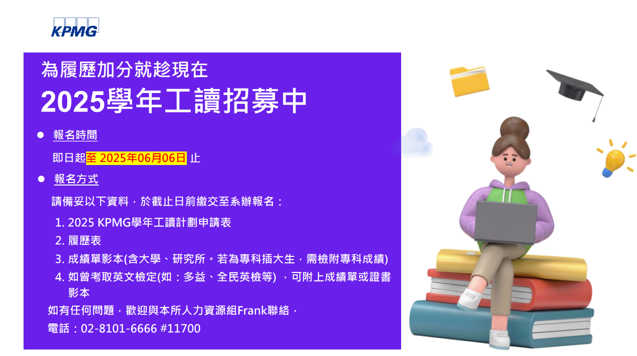 (代轉)【KPMG 2025學年工讀招募中】為履歷加分就趁現在!!