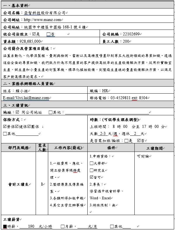 (代轉發)亞智科技股份有限公司誠徵實習工讀生 2025-02-14 最新消息 You Might Also Like (代轉)正峰工業股份有限公司 – 會計管理師 招募公告 2025-02-24 (代轉)2025 勤業眾信稅務達人挑戰賽 2025-04-29 中華防災學會111年度學生論文獎徵選 2022-10-04