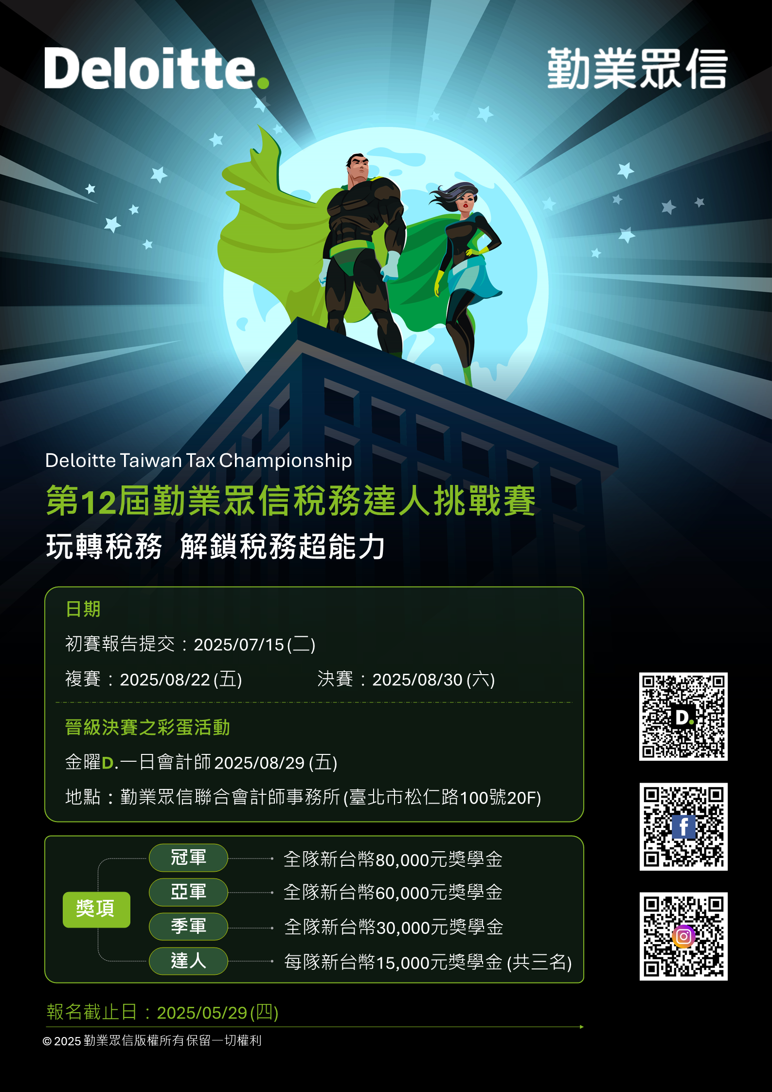 2025 年勤業眾信稅務達人挑戰賽報名截止日為 5 月 29 日(四)